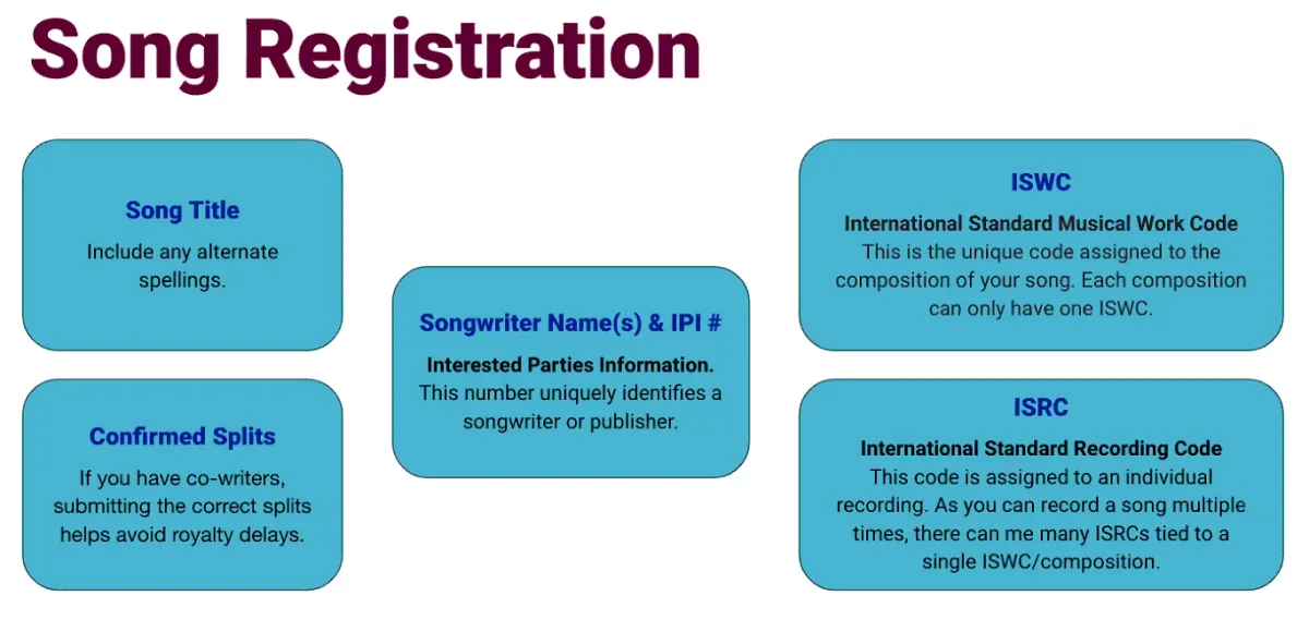 I see so many fellow artists releasing new music all the time WITHOUT registering their song metadata first, because they erroneously believe registering their song with their PRO and their Distributor are enough! You will be surprised how valuable the Release Resource Checklist is for your next song release since registration of your song metadata in these databases allows you to be paid some of the royalties